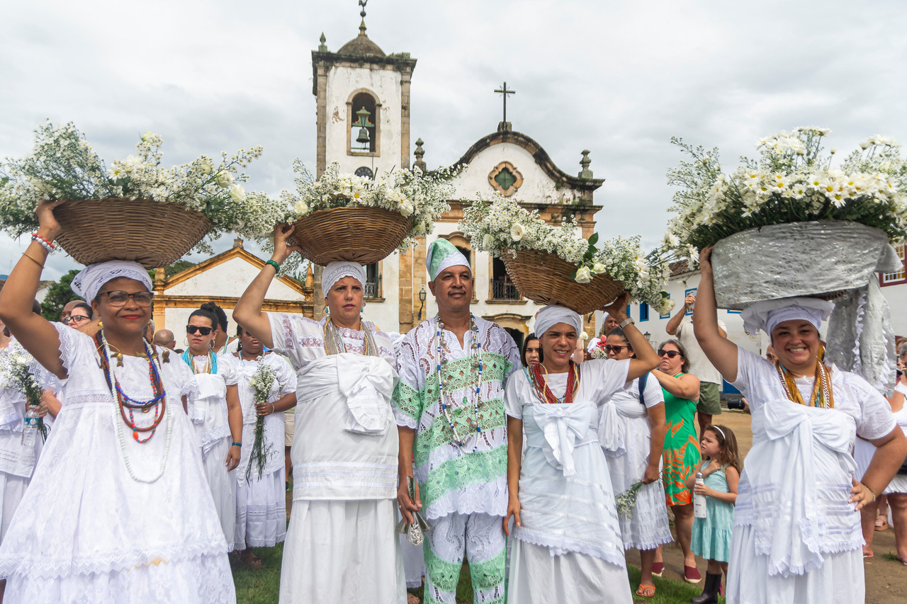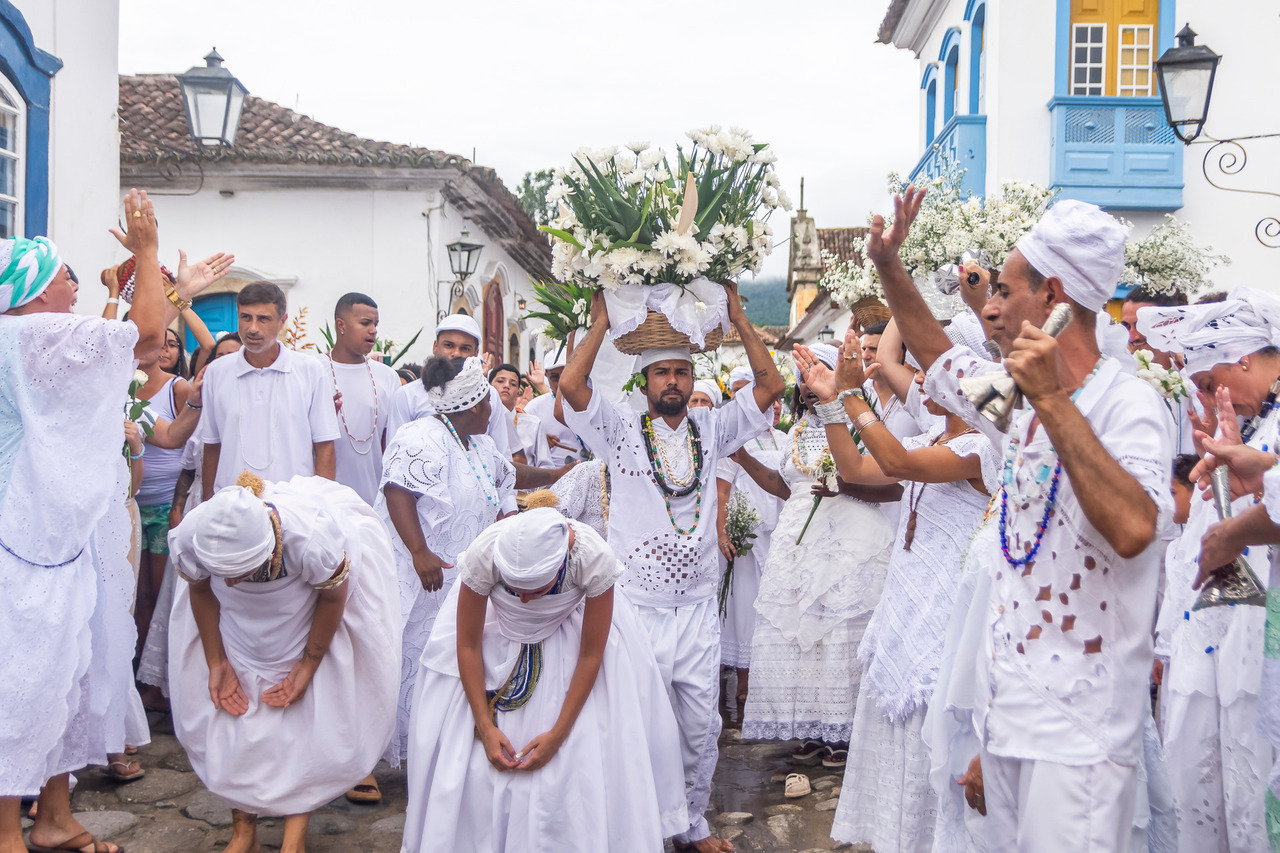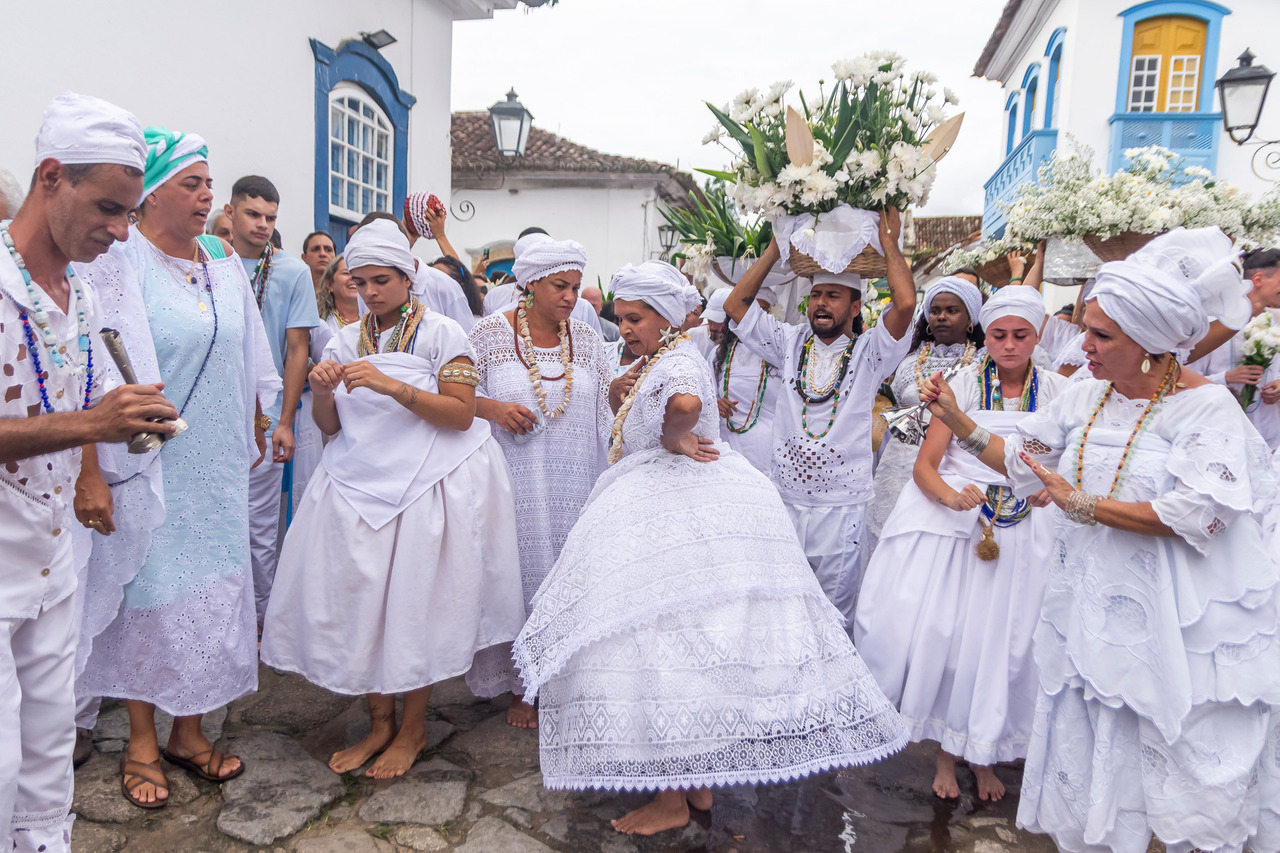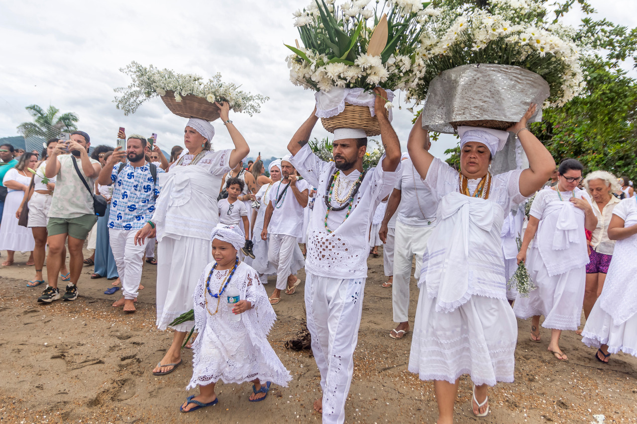 A Festa de Yemonjá 2025 teve um cortejo pelo centro histórico de Paraty finalizando com as entregas dos balaios de Yemanjá no mar na praia do Pontal.
