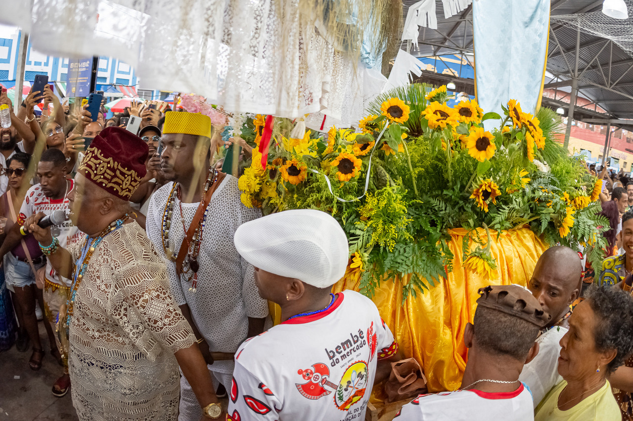 O Bembé do Mercado é uma manifestação religiosa e cultural afro-brasileira, considerada o único candomblé de rua do mundo, que se realiza anualmente em Santo Amaro da Purificação, na Bahia, no dia 13 de maio, para celebrar a abolição da escravatura. É uma celebração que reúne mais de 60 terreiros e centenas de pessoas, com cortejos, músicas, danças e rituais que honram os orixás e os ancestrais.