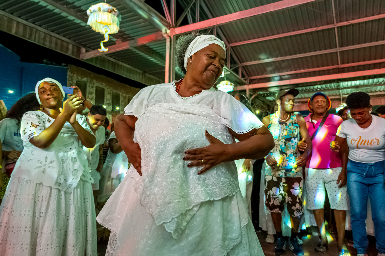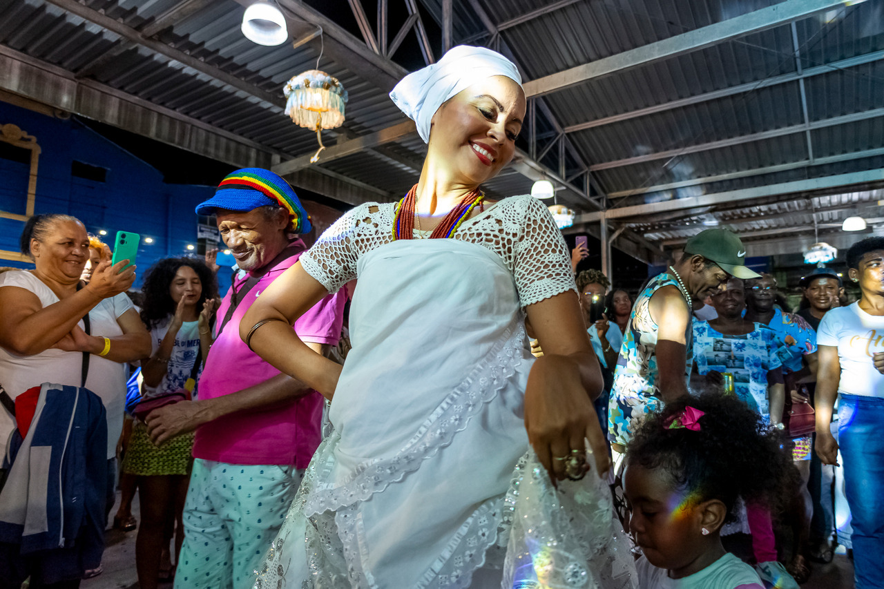 O Samba de Roda baiano é especialmente forte e mais conhecido na região do Recôncavo, a faixa de terra que se estende em torno da baía de Todos os Santos. O Samba de Roda traz como suporte determinante tradições culturais transmitidas por africanos escravizados e seus descendentes, que incluem, entre outros, o culto aos orixás e caboclos. A dança acontece simultaneamente ao canto, e várias pessoas podem sambar de cada vez, na coreografia, o gesto mais típico é o chamado miudinho, que consiste num quase imperceptível deslizar para frente e para trás dos pés colados ao chão.